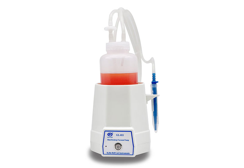 其林贝尔GL-811型真空泵1。产品介绍:微型真空泵GL-811是其林贝尔推出的一款专供于细胞培养实验用户的桌面吸液/抽滤工作系统。其主要功能是用于细胞培养实验过程中的废液处理,以及液体样品的抽滤除菌处理。小巧而简约的外观设计,约一瓶培养基大小的占地空间,能够让其成为超净工作台/生物安全柜里合适的桌面帮手。2.产品特色:小巧简约:约一瓶培养基的体积大小,极大地节省了工作台面的空间。八角型设计,牢固隐重。金属带灯开关,开关一目了然。方便易用:内置锂电池,随时随地,即开即用;满电状态下可连续工作4小时以上。安全高效:4~6 L/min的空气流量速度,能够快速有效的去除废液;12V安全电压,保证使用过程安全可靠。双重功能:可满足实验室废液处理和真空抽滤两大功能3.应用范围:细胞培养换液/传代过程中去除旧培养液;液体离心后去除上清液体;微孔板上清液体去除;培养基/缓冲液等液体的过滤除菌,需配合滤器使用;4.设备参数:供应电源 : DC 12V 1.0 A电池容量 : 锂电池 3000 mA最大真空度 : -60KPa流量速率 : 4 ~ 6 L/MIN储液瓶 :1000 mL噪音值 : ≤55 dB主机重量 : 0.85 Kg整机尺寸(不含储液瓶) :150mm*150mm*165mm